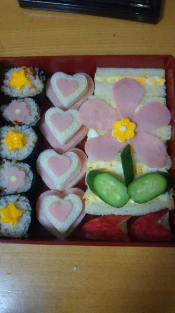 幼稚園の運動会弁当です。チーズと卵が苦手でも、ミッフィーにしたら食べてくれました。
